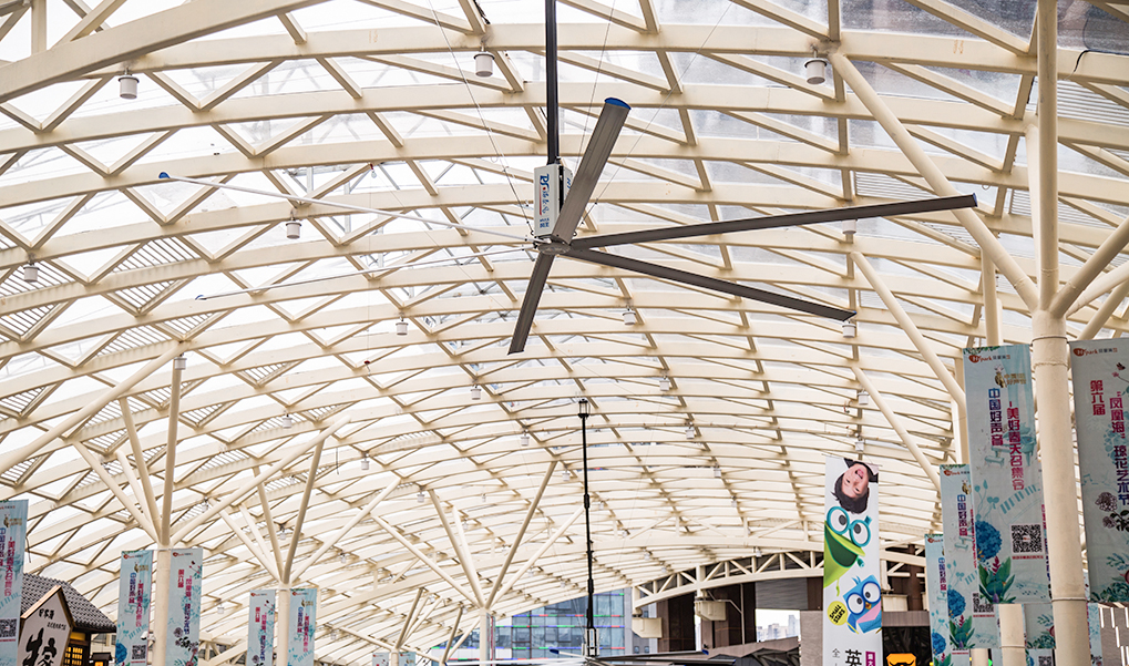 湖南一家某大型商场面对高温不通风问题,通过网络毫不犹豫的找到了我们瑞泰风RTFANS HVLS fan,他们告诉我们的销售工程师,告知我们他们商场,高度高,面积大,一般降温设备无法满足他们的降温要求,要么满足了前期投入大,后期维护麻烦,也很耗电。