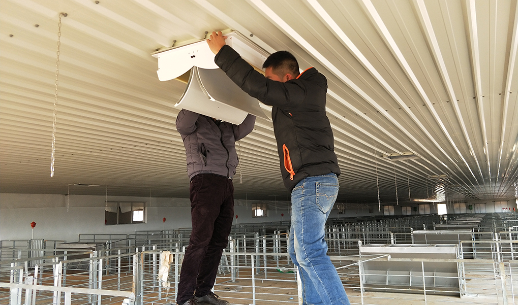 负压通风换气是控制猪舍环境的一个重要手段。通风换气的目的有两个,一是在气温高的情况下,通过加大气流使猪感到舒适,以缓和高 温对猪的不良影响;二是在猪舍封闭的情况下,引进舍外新鲜空气, 排出舍内污浊空气和湿气,以改善猪舍的空气环境,并减少空气中微 生物的含量,起到消毒防病的作用。通风是改善猪舍小气候的重要措施,任何季节均系必 须。通风换气的多重性作用体现在调节室内温度、湿度、排 除有毒有害气体如氨气、硫化氢和二氧化碳等,从而改善 室内卫生状况。密闭式或半开放式猪舍冬季増设防寒设施时,千万注意通风。如何做好通风很重要,温度的智能控制、感应、风速、风压的设计、风机的风量匹配、进风面积的设计、栏舍构造不同方案不同、变频机组数的设计、冬季换气的微调、天窗的匹配、换气次数的换算等等都直接影响不同季节的猪只生长情况。