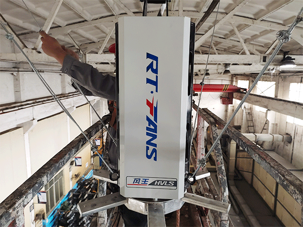 3、安装风扇时有钢丝牵引拉索以防风扇受外力影响而晃动。