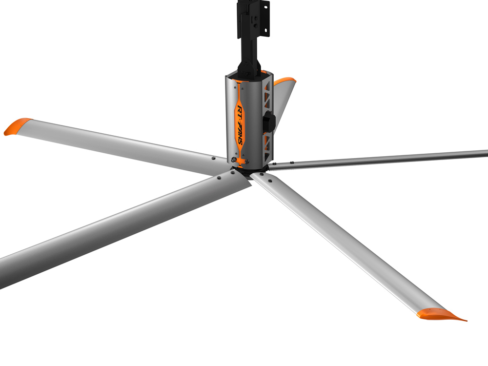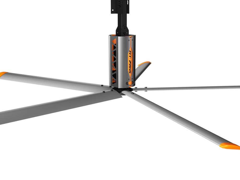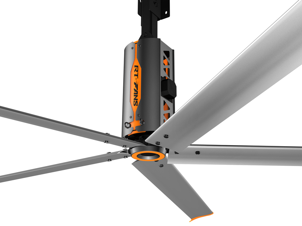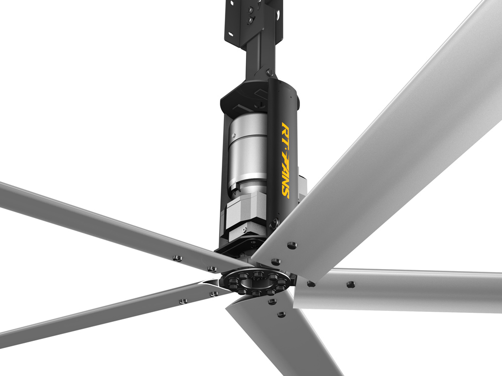 5、安装安全便利,美观亮丽:风扇安装在离地面3.5米以上的上部空间,通过卡夹方式固定在屋面结构梁上,不会影响任何地面工作区域正常工作进程,美观、大气、安全可靠。若风扇选配绚丽的瑞泰风彩色扇叶,自然形成一道亮丽的风景线