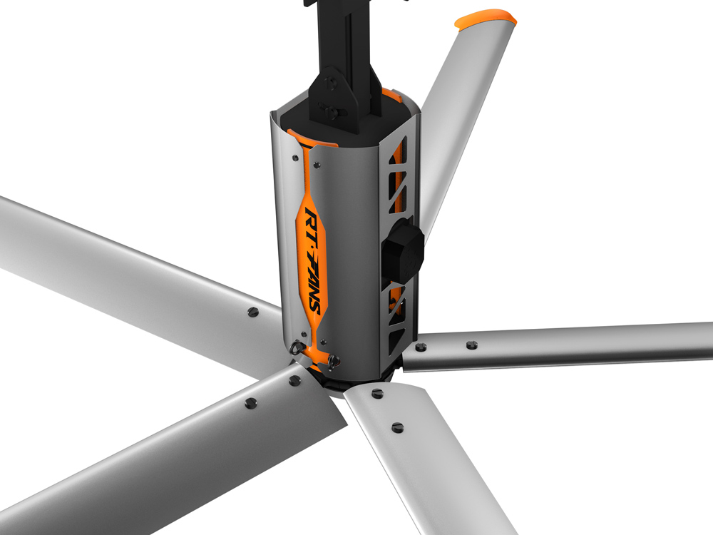 5、安装安全便利,美观亮丽:风扇安装在离地面3.5米以上的上部空间,通过卡夹方式固定在屋面结构梁上,不会影响任何地面工作区域正常工作进程,美观、大气、安全可靠。若风扇选配绚丽的瑞泰风彩色扇叶,自然形成一道亮丽的风景线